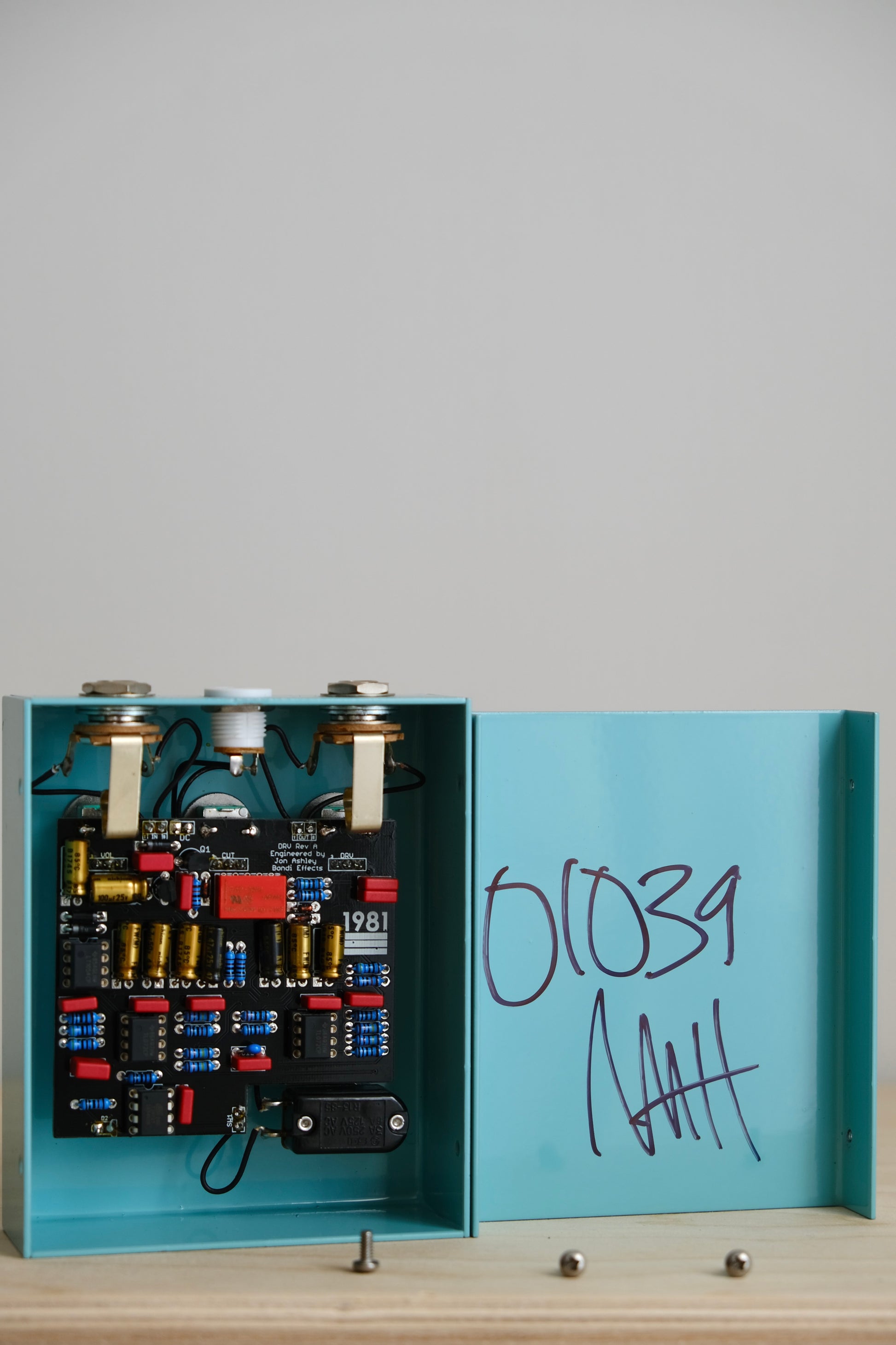 I have been working on this project for the better part of three years, as a collaboration and with engineering by Jon Ashley of Bondi Effects. I feel that the pedal is unique in design and sonically unlike anything I have ever heard, especially in the lower gain and boost settings. There is a subtlety that feels more like a vintage pedal than a modification of a classic. There are two circuits present in the pedal, one distortion and one preamp boost, running at 18v via an internal voltage regulator. I made this pedal with the idea to create a distinction for my own sound, and what I found is that it is an extremely useful tool for capturing a lot of different types of sounds. I am most proud of the lower gain side, as I feel it is the most unique section of the pedal, but I must also include that the gain section is extremely sweet sounding throughout, especially for heavy and complex chords. There is a midrange punch that I love and a warmth and thickness that reminds me a bit of a ribbon mic. When the development of this pedal turned into something new and unique, it became the catalyst to starting 1981 Inventions, so I decided to make this the first official release.