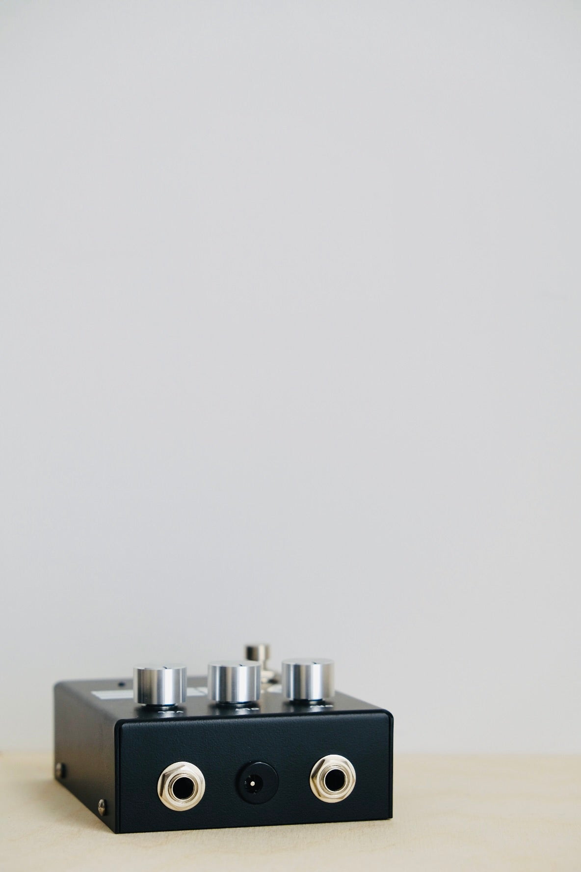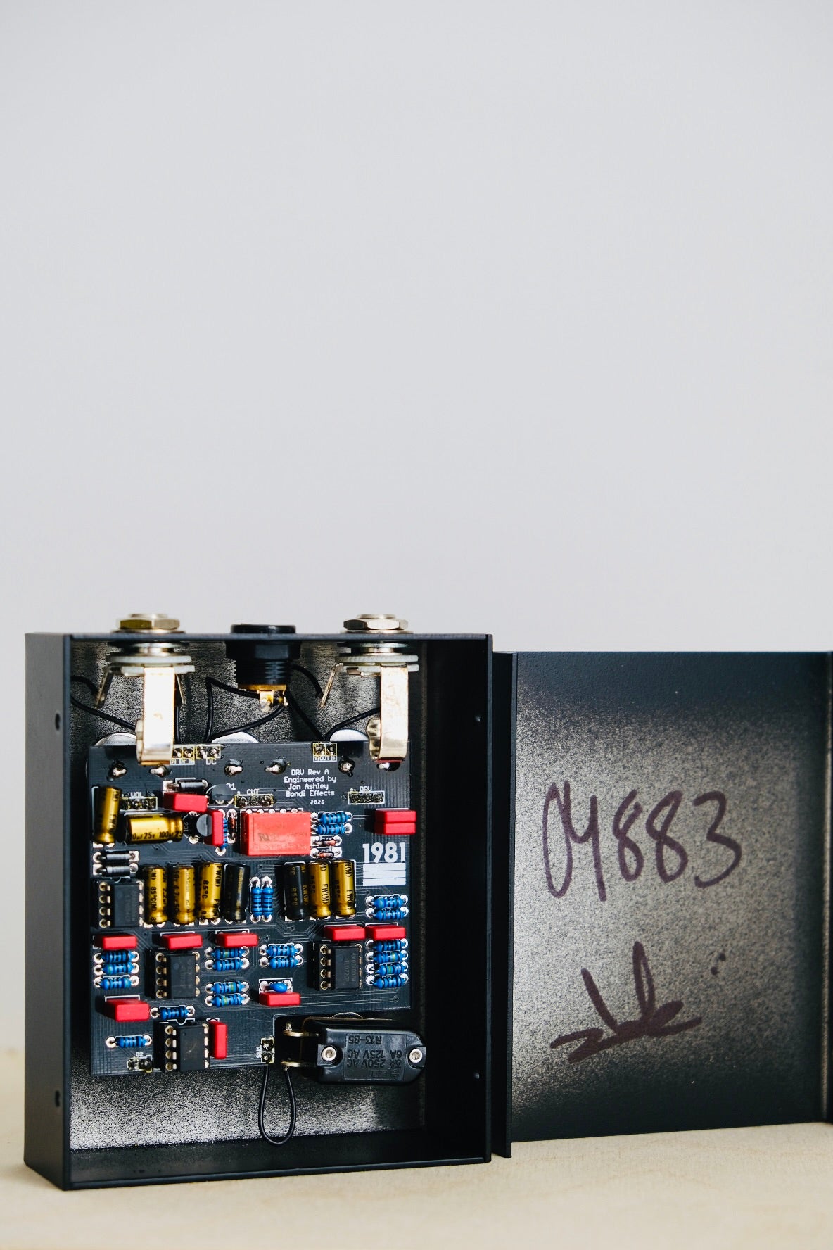 I have been working on this project for the better part of three years, as a collaboration and with engineering by Jon Ashley of Bondi Effects. I feel that the pedal is unique in design and sonically unlike anything I have ever heard, especially in the lower gain and boost settings. There is a subtlety that feels more like a vintage pedal than a modification of a classic. There are two circuits present in the pedal, one distortion and one preamp boost, running at 18v via an internal voltage regulator. I made this pedal with the idea to create a distinction for my own sound, and what I found is that it is an extremely useful tool for capturing a lot of different types of sounds. I am most proud of the lower gain side, as I feel it is the most unique section of the pedal, but I must also include that the gain section is extremely sweet sounding throughout, especially for heavy and complex chords. There is a midrange punch that I love and a warmth and thickness that reminds me a bit of a ribbon mic. When the development of this pedal turned into something new and unique, it became the catalyst to starting 1981 Inventions, so I decided to make this the first official release.