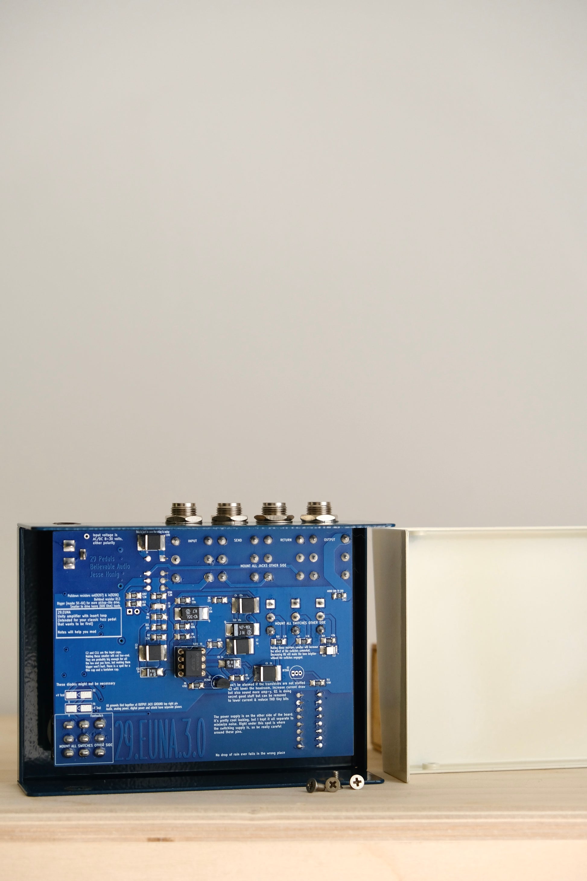 An input driver that replaces a conventional buffer, EUNA is built to protect and condition your instrument's signal to prepare it for whatever you want to do with it. Console grade build, three great sounding filters, and an alt-path insert loop for your classic fuzz and wah circuits that don't want to be buffered. Also features the 29 Pedals WHATEVER power supply, which accepts 7.5 to 35 volts of AC or DC in either polarity with no change in tone. EUNA is made by 29 Pedals in California.