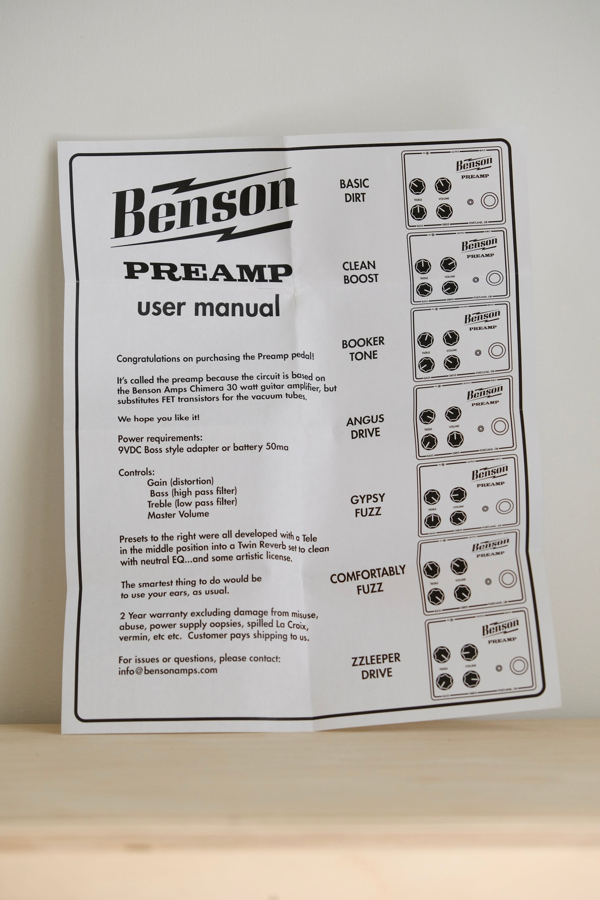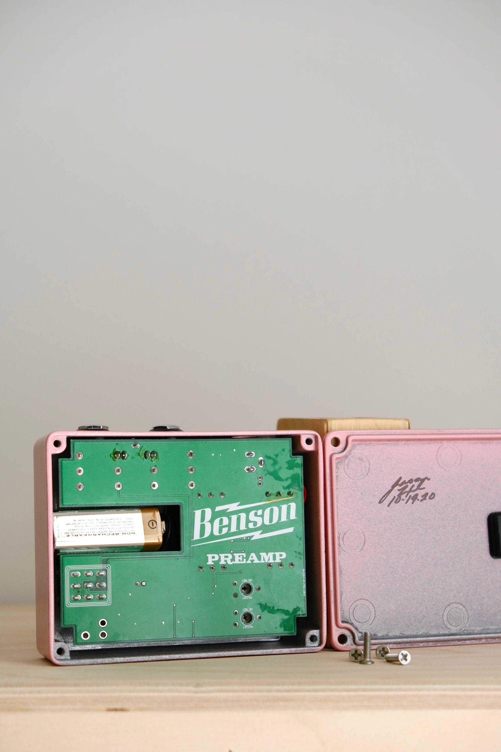 "This is an all time favorite pedal of ours, and we are pleased to offer it in this exclusive shell pink sparkle finish. Whether you are using it for a light overdrive, or heavier saturation, the Benson Preamp pedal gives you the versatility of Chris' beloved Chimera in a box." - Black Bobbin