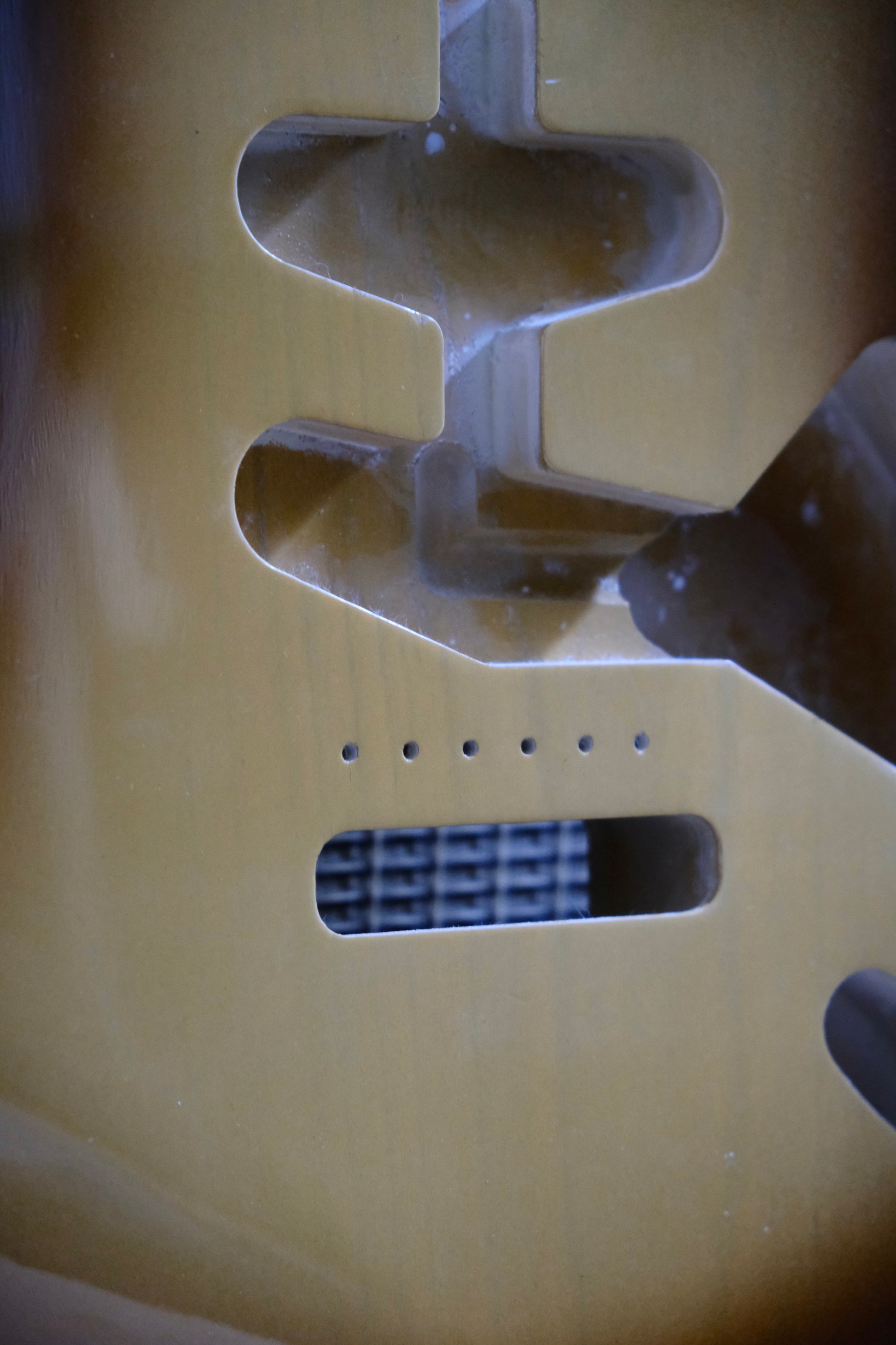 I put a 100% nitrocellulose lacquer finish on it, which allows the wood to resonate much easier with the thin lacquer finish! I went with a "Closet Clean" finish.