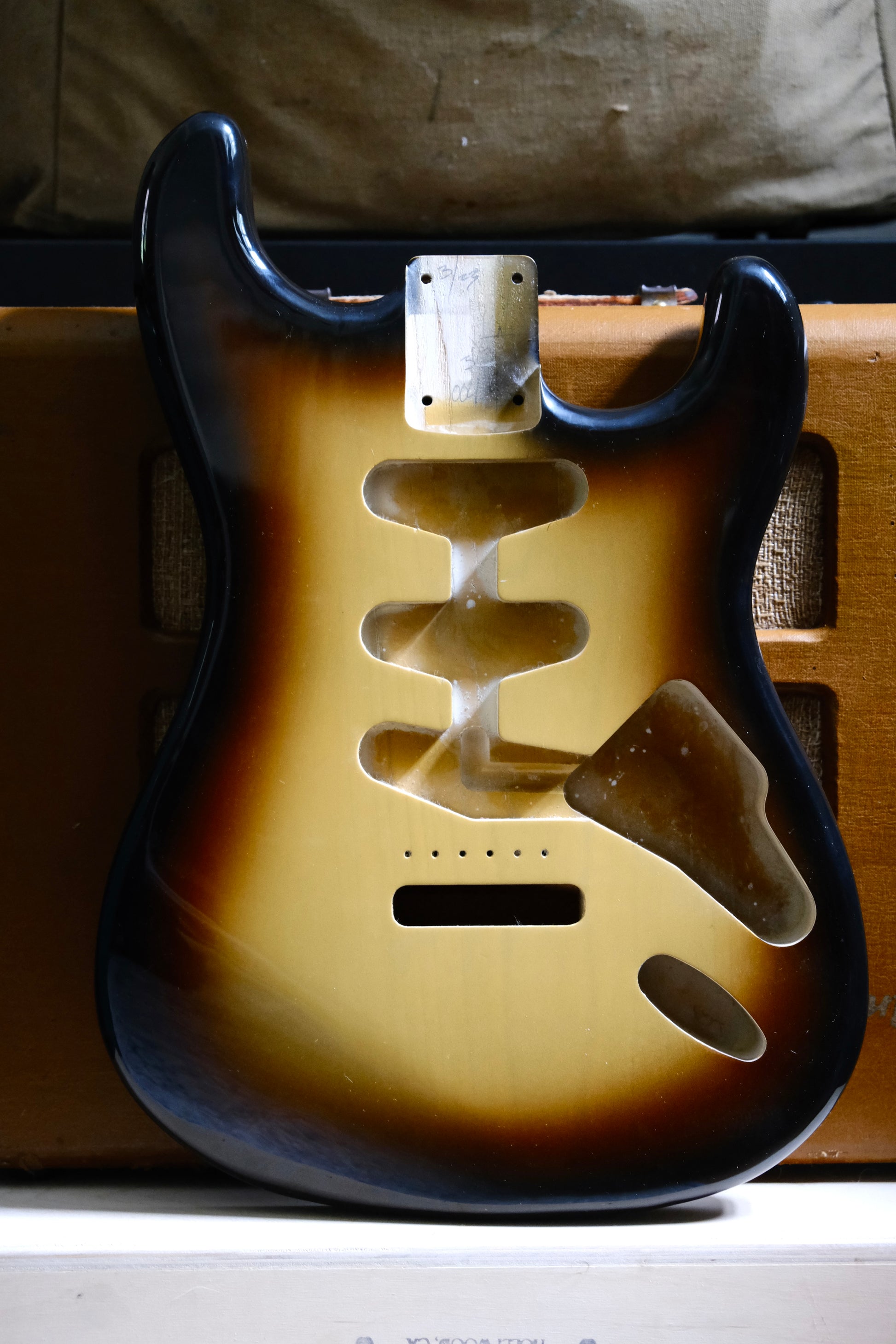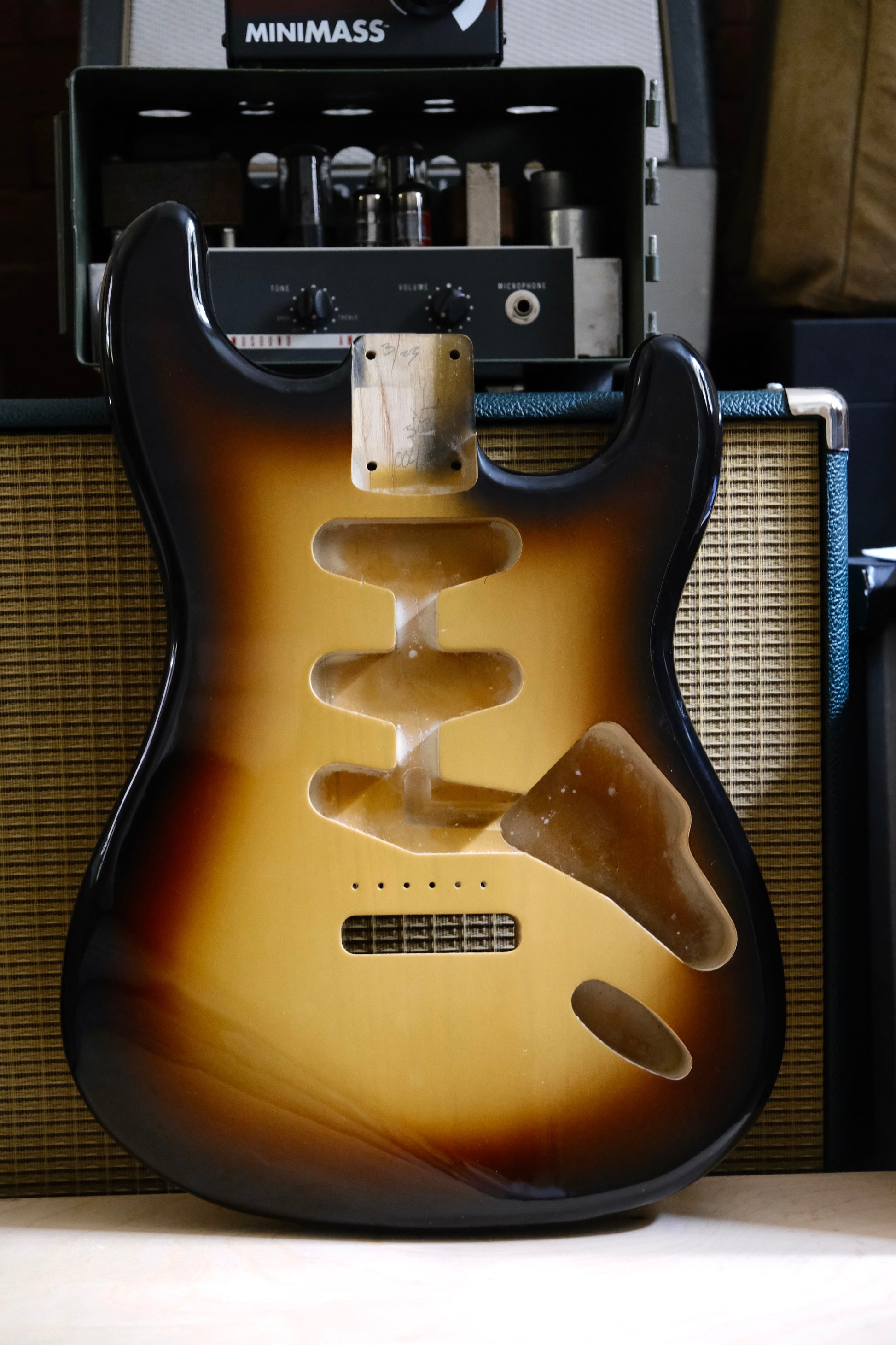 3lb 14oz BloomDoom Nitro Lacquer Aged Relic 2 Tone Sunburst S-Style Vintage Custom Guitar Body.