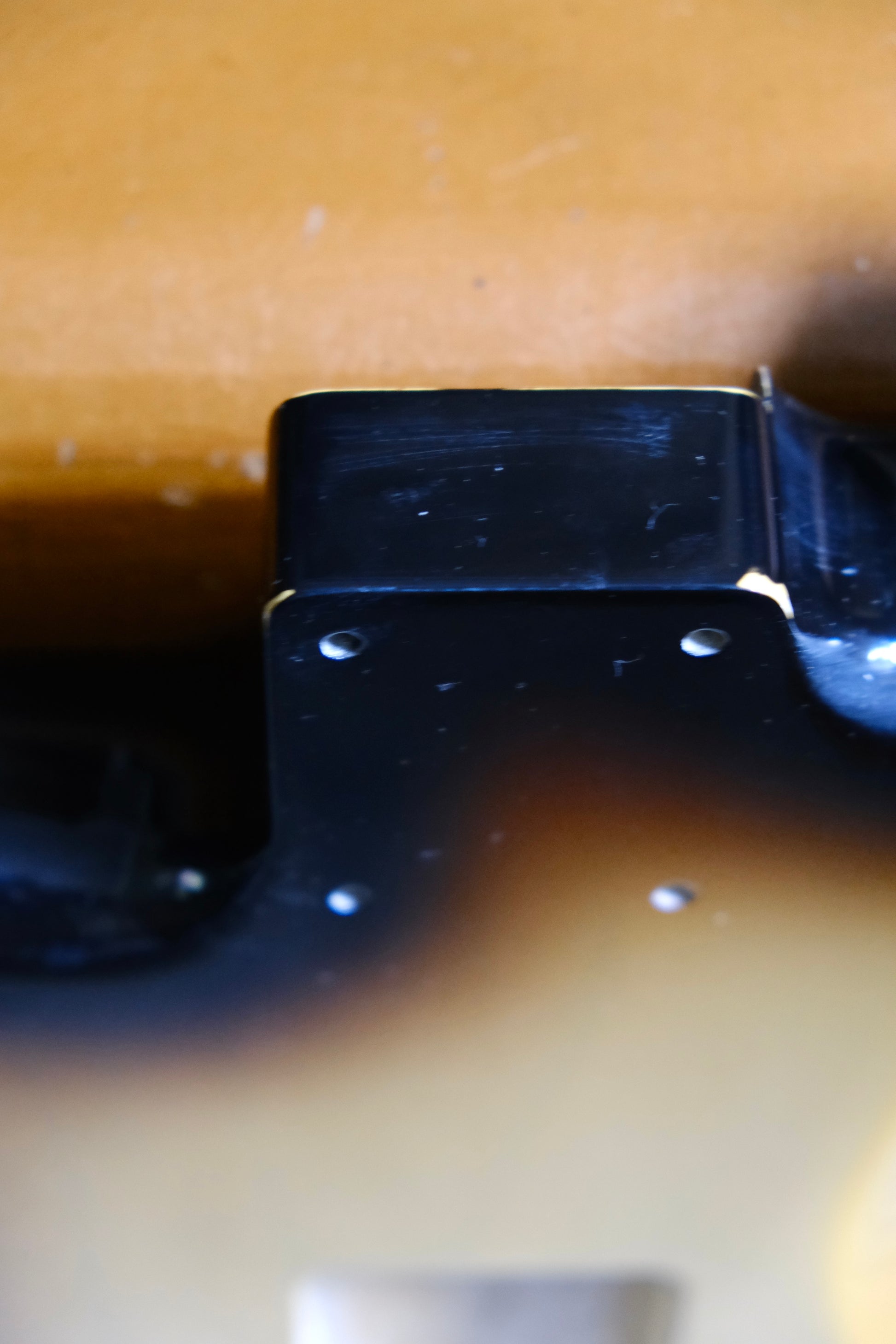 This one weights 3 pounds and 14 ounces. This is a brand new S-Style body. Color is 2 Tone Sunburst, wood type is Swamp Ash and the unfinished guitar body is made by Wildwood. Pick guard is not included.
