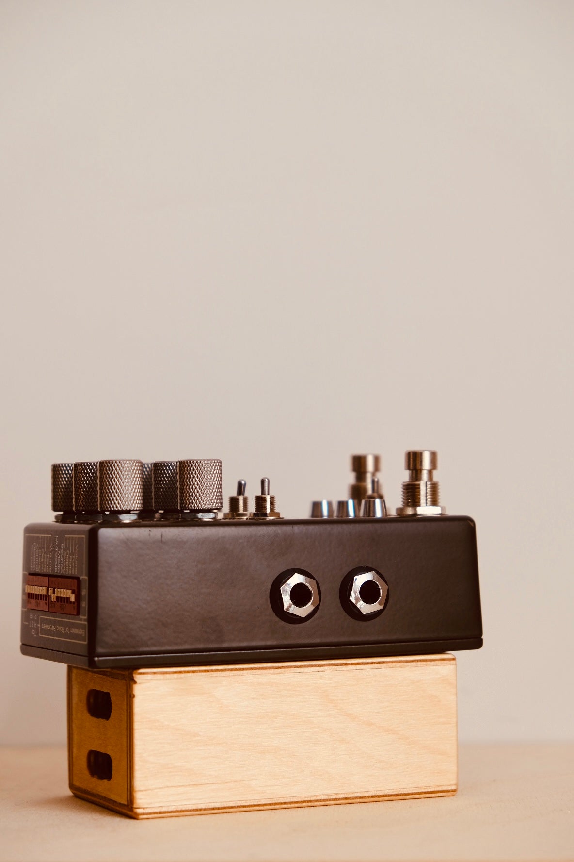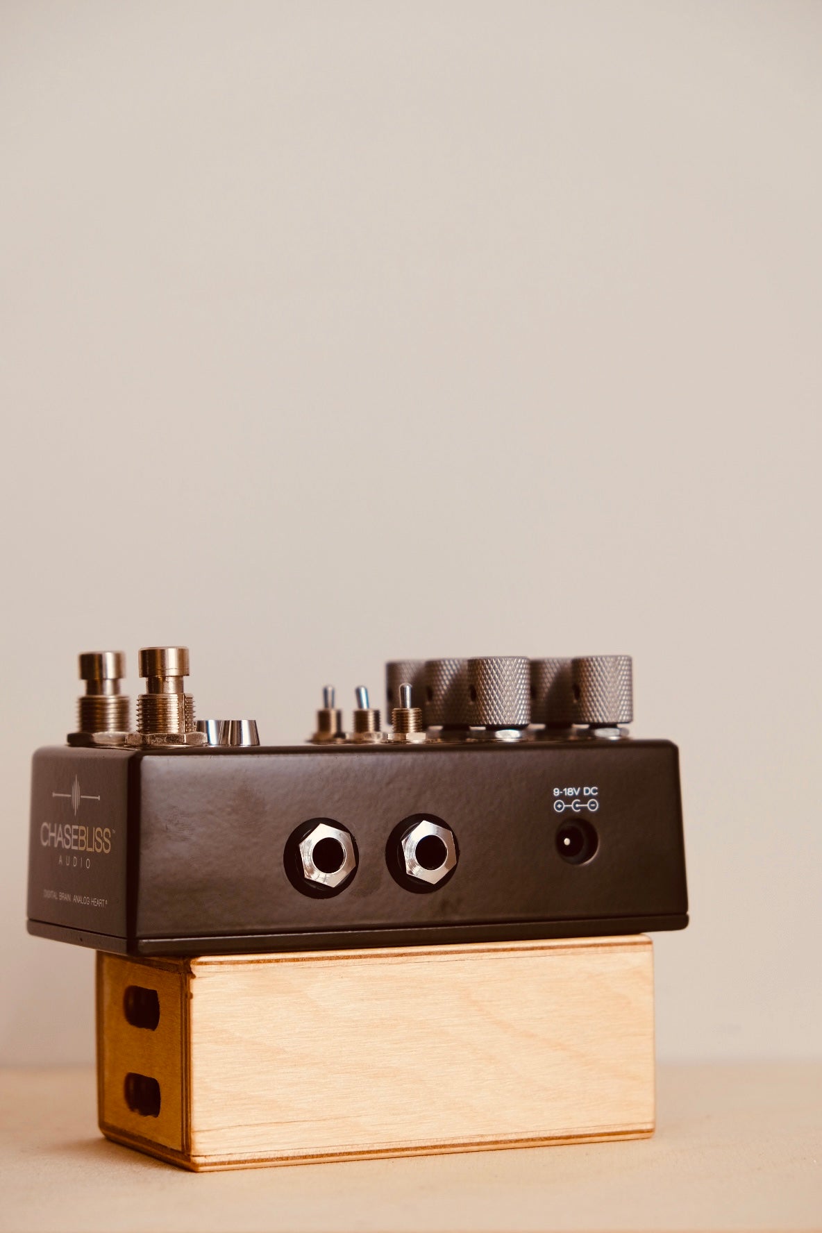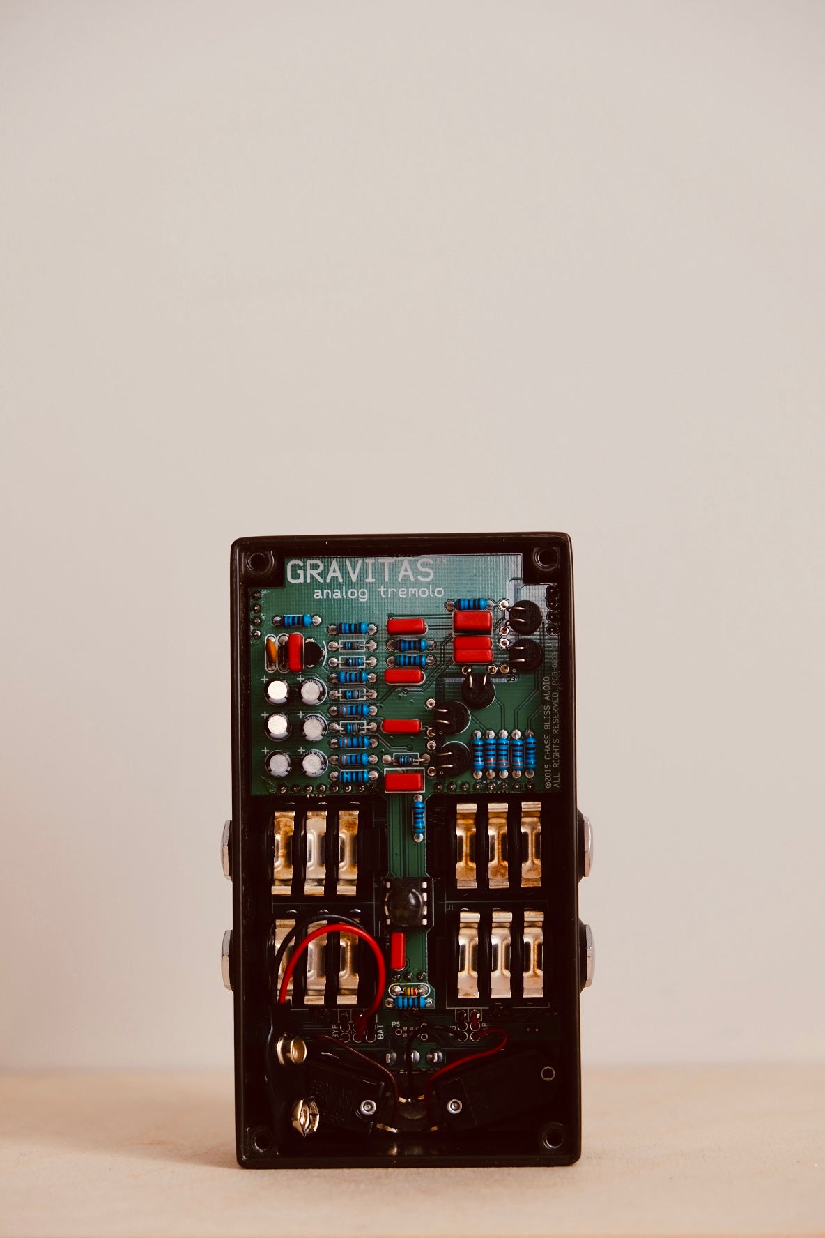 The Chase Bliss Gravitas is a tremolo pedal features an all-analog signal path that can do any variety or shape of standard volume modulation, harmonic tremolo (inspired by vintage Brown panel) or both simultaneously for a truly unique and beautiful tremolo sound that sits just perfectly in a mix. The first thing your guitar hits in the signal path is a gorgeous, transparent, discrete class A clean boost circuit, and is followed by buffering and tone shaping with famed Analog Devices AD823 opamps for perfect tonal clarity, and analog warmth. Further, every knob and switch is connected to a little digital brain while your guitar signal stays 100% analog the entire time and never gets digitally processed. Since the control of the effect is digital, it opens up unprecedented effects and features that have never been heard or offered in analog stompboxes.