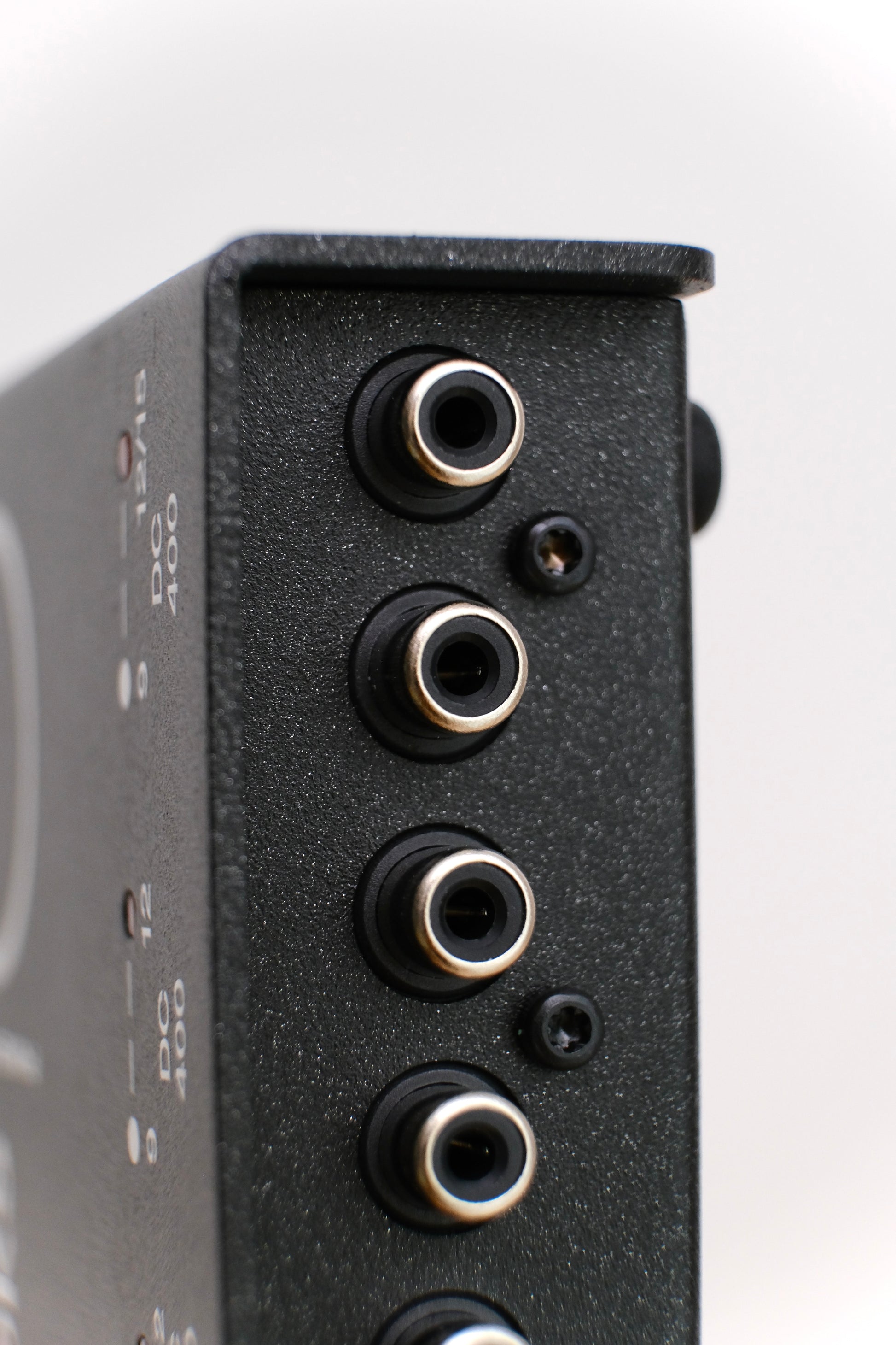 The three powerful sections with 400mA each will power pedals with special requirements like Strymons, Eventides, TC Electronic Nova-series pedals or TC Helicon pedals, Moogerfoogers, Radial Tonebone pedals or others without the need of special cables. Selectable with a switch DC10 offers voltages 9, 12 and 15V, and combined with the included Stack Flex or Series adapter Flex also 18 and 24V. The first 4 isolated outlets offering 4x100mA are perfect for standard 9V low current pedals.