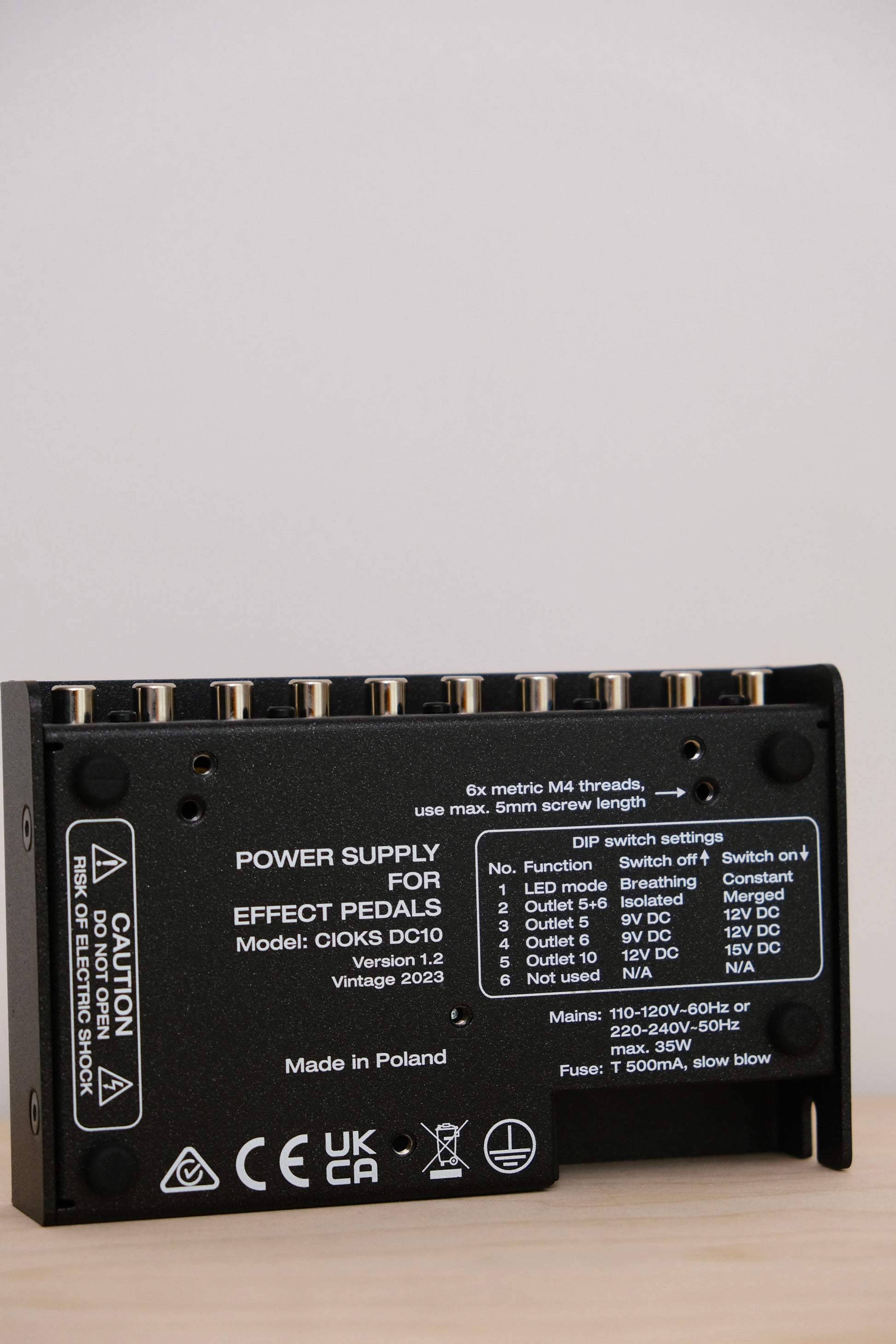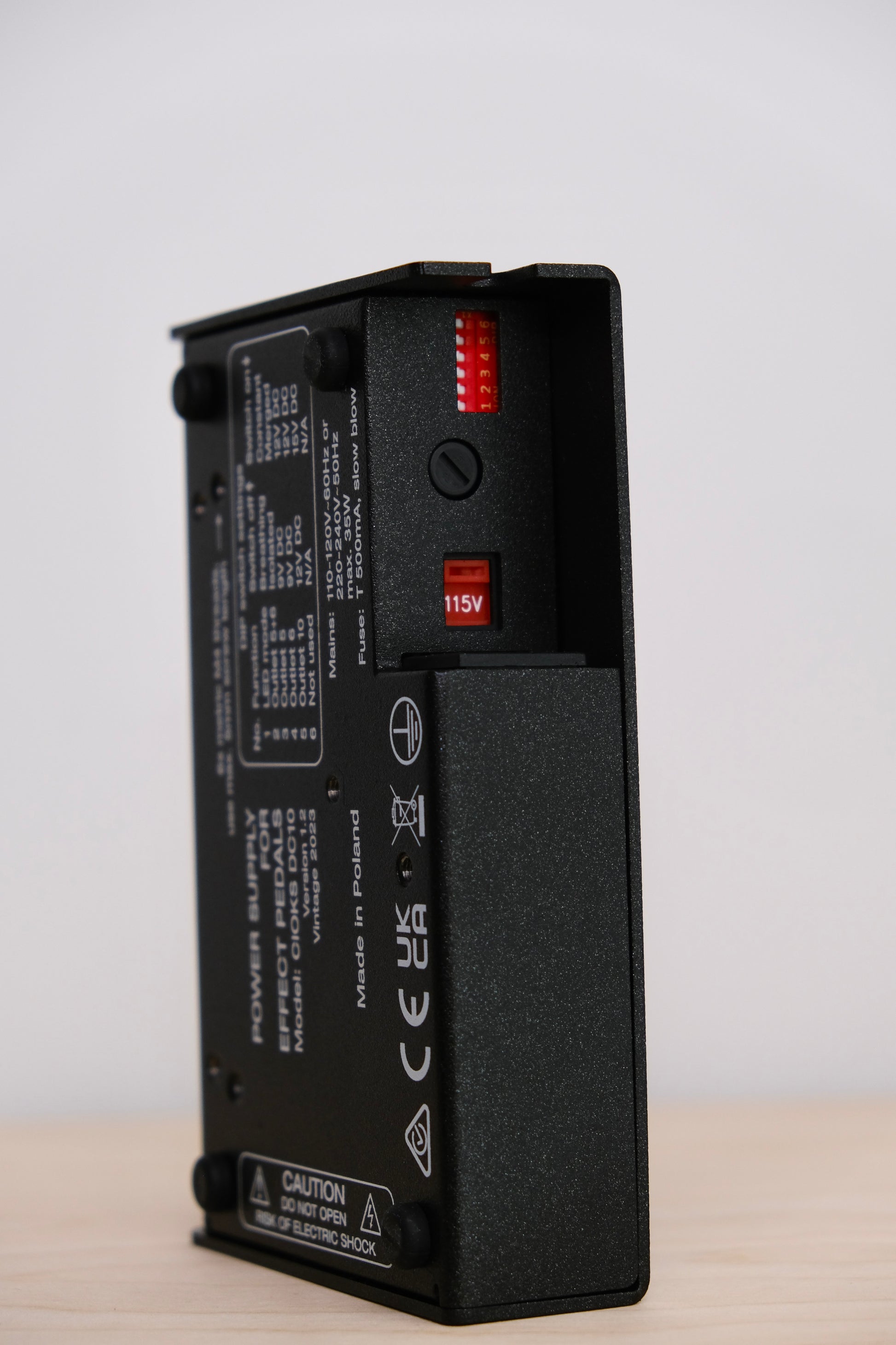 DC10 is a multi-output power supply for effect pedals based on a toroidal transformer. It has 10 regulated and well-filtered DC outlets configured in 8 isolated sections. With a total of 1.600mA it’s a perfect solution for bigger rigs with DC pedals only.