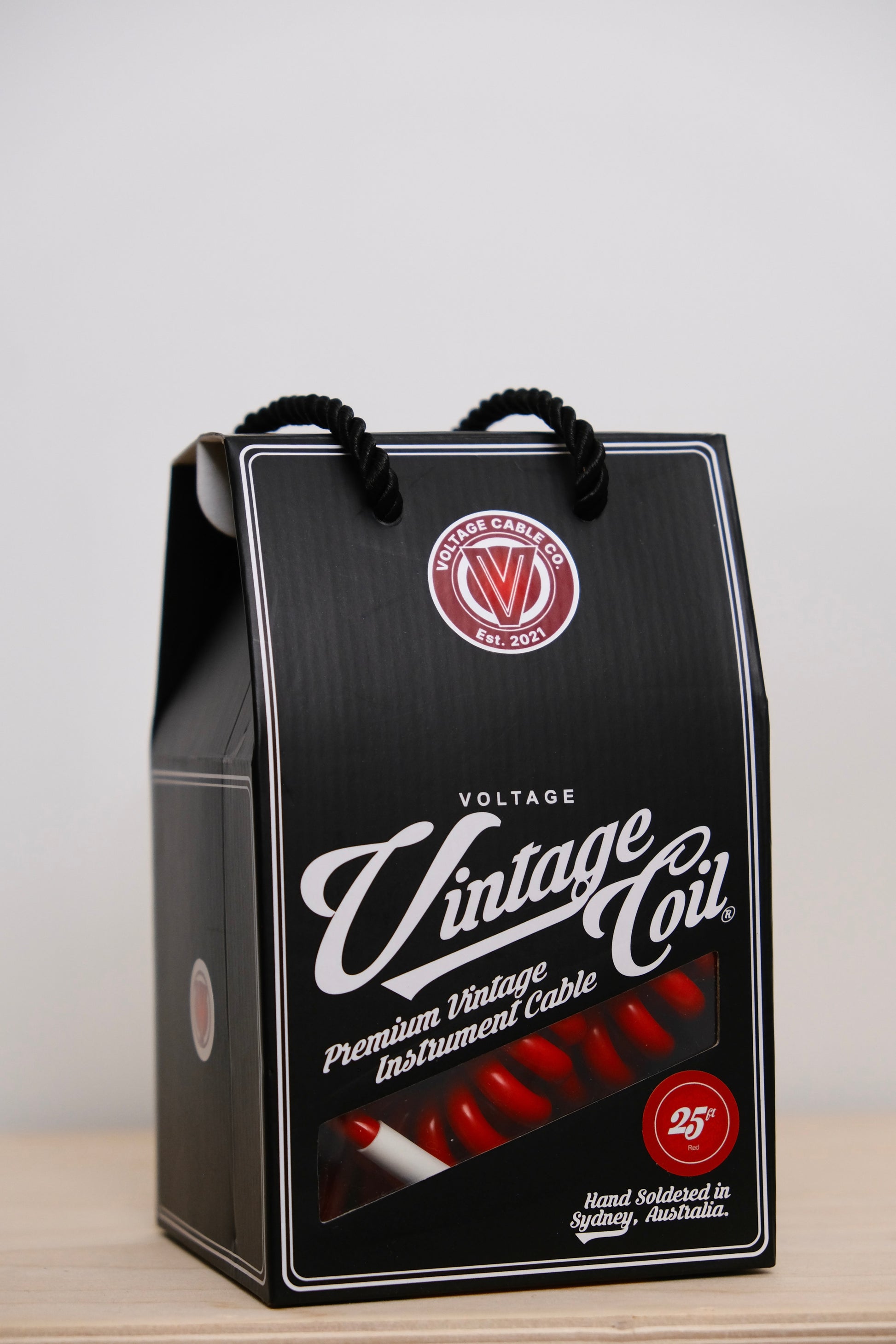 Voltage Cable Co. Vintage Coil Instrument Cable 25' - Red Straight to Right Angle Plugs