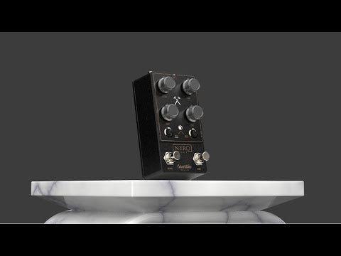 The Nero pedal combines a unique fuzz circuit with a built-in Gladio SC, activating both circuits simultaneously for a stacked drive effect. It features a "Comp" knob for compression management, altering overall compression, and two independent bias controls ("voices") for a range of fuzz and overdrive tones. Notably, Nero allows for flexible gain control, maintains high input impedance for pedalboard versatility, offers constant compression adjustment, and seamlessly transitions between gritty fuzz and full overdrive with a footswitch. It also achieves gated fuzz and nice cleanup effects under specific conditions.