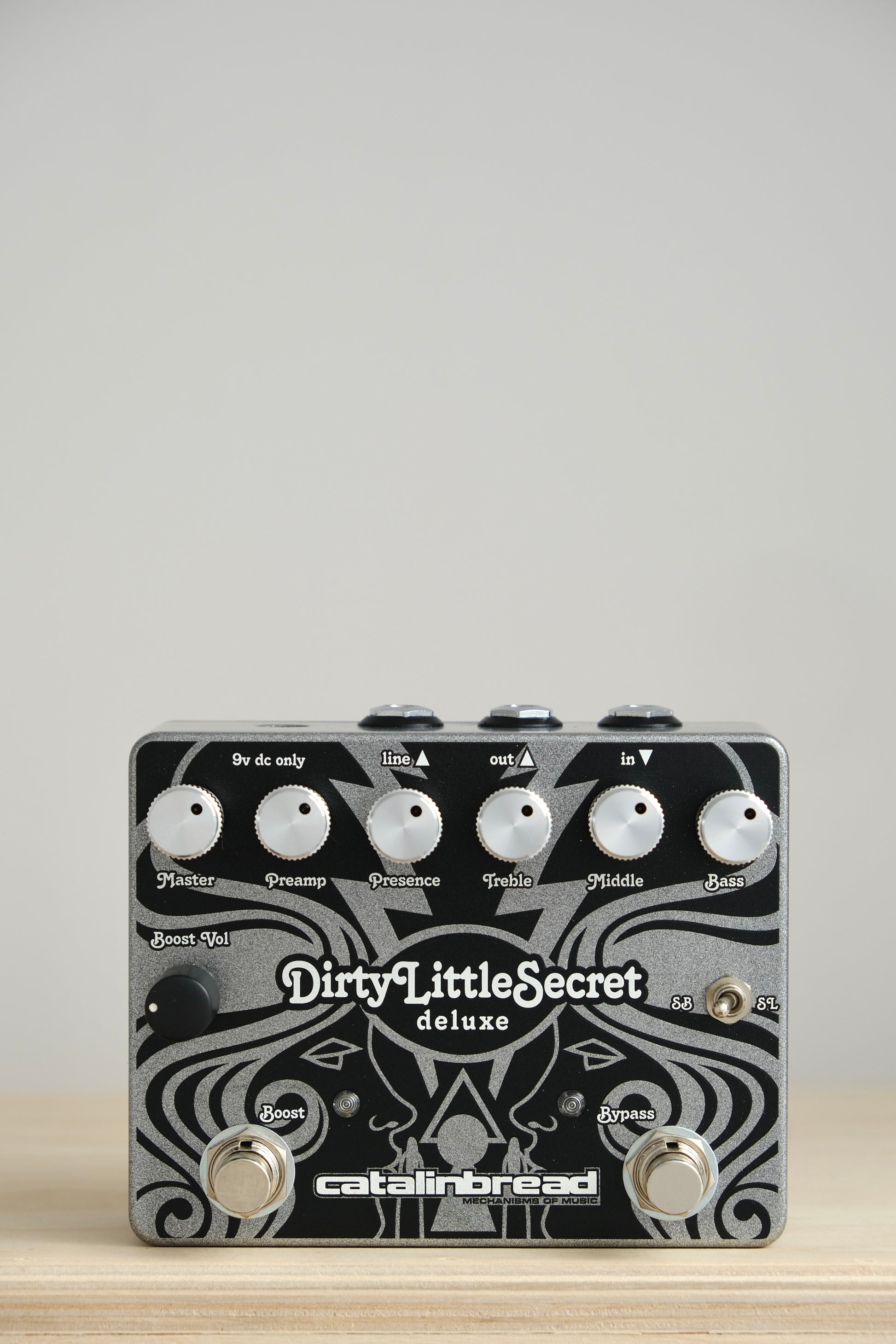 The Dirty Little Secret Deluxe is dedicated to all things Marshall, featuring an all-discrete circuit with a preamp, phase inverter, power amp sim and output transformer. A built-in footswitchable boost modeled after a clean Marshall preamp and effect order switch gives you a fully-customizable amp-in-a-box experience.