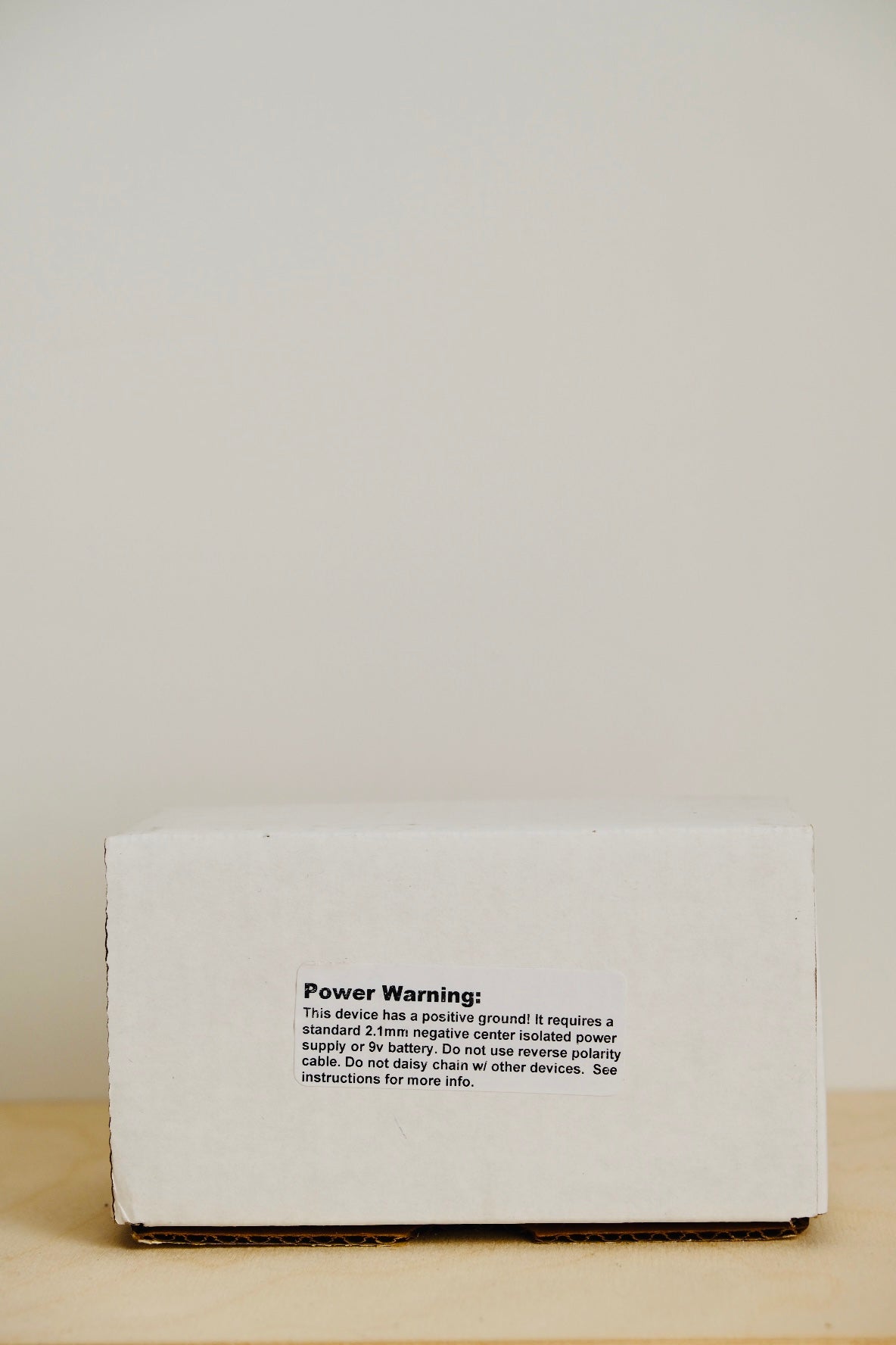 Our pedals take a standard 9 volt DC power supply with a 2.1mm negative center barrel. We always recommend pedal-specific, transformer-isolated wall-wart power supplies or multiple isolated-output supplies. Pedals will make extra noise if there is ripple or unclean power. Switching-type power supplies, daisy chains and non-pedal specific power supplies do not filter dirty power as well and let through unwanted noise. Do not run at higher voltages!