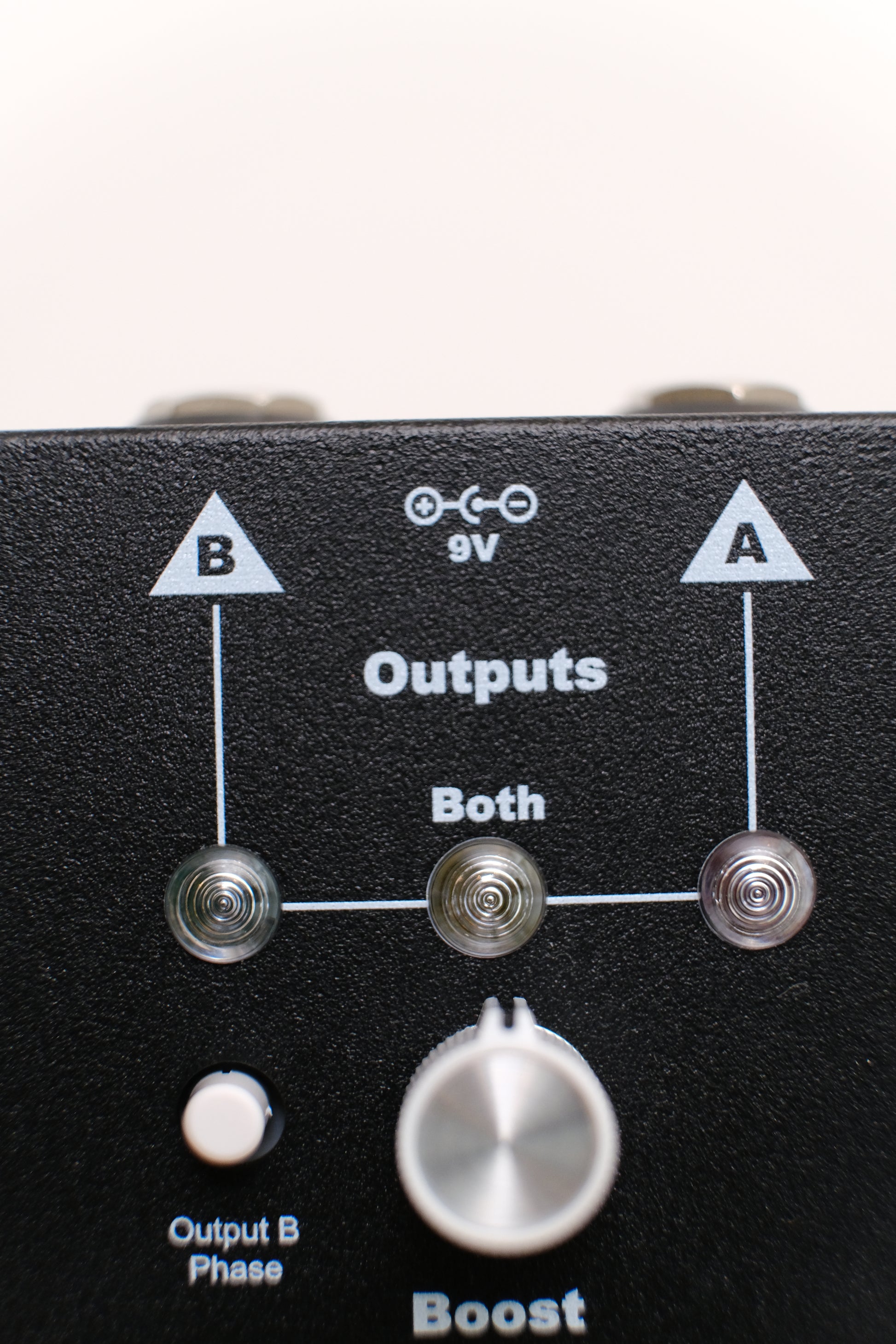 Note: Output B is transformer-isolated and includes a Phase switch for use with pedals and/or amplifiers which invert phase.