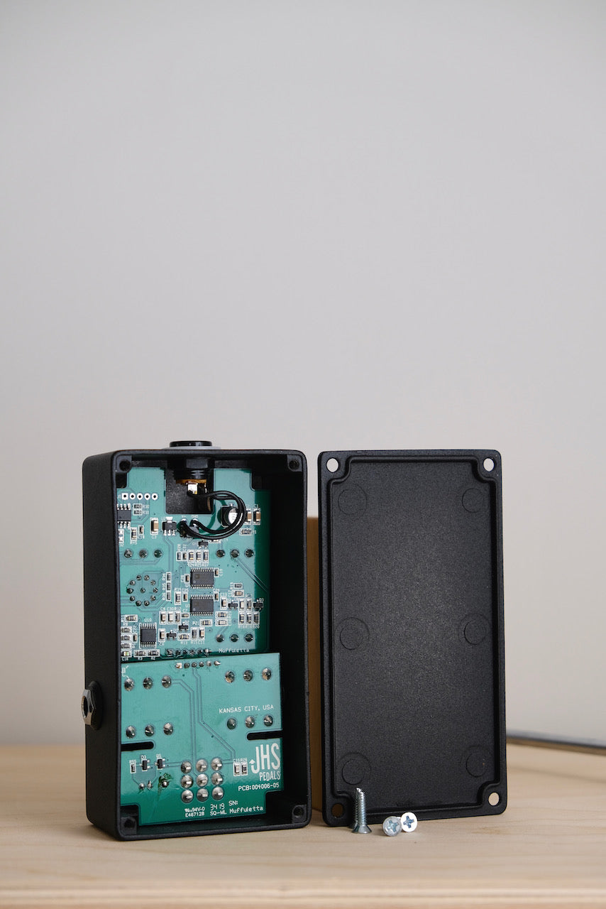 The JHS Muff is a JHS original take on the classic circuit. You will find this version more powerful and less compressed, with a more haunting midrange. It is also the best for bass guitar.