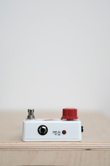The tiny switch on the side of the pedal allows you to switch between two boost circuits: a FET boost (or field effect transistor boost, which was made famous by the Keeley Katana) and a classic op amp style boost (much like you’d find in the MXR Micro Amp or how many people like to use the Klon nowadays - gain off and just using the volume for boosting your signal).
