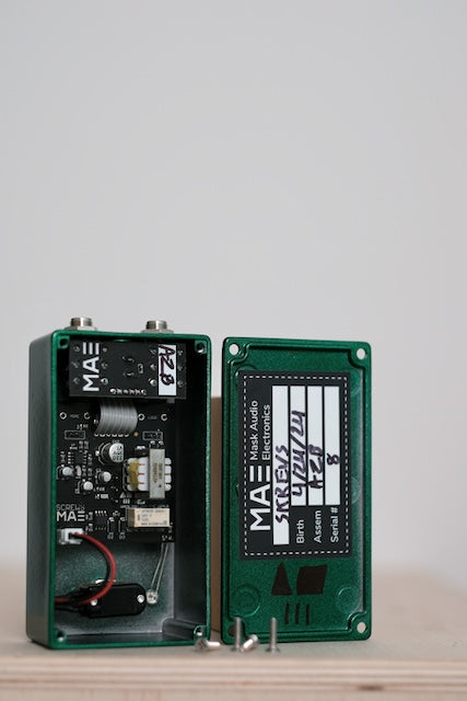 Using an op-amp blown way beyond its limits and some clever trickery, Screws accomplishes one of the most difficult tasks in all of fuzzdom: an octave fuzz with an ever-present octave, no matter the guitar, no matter the situation. If you want to do the classic Jimi thing (or some sitar-like clang), Screws has got you. If you want to be the most bricked-out thing in the mix (and give those cymbals a run for their money), Screws has your back. If you're looking to get your Swede on, put the Tone switch in the middle and start stacking. Whether main character or supporting role, Screws is there, calling back to the roots of Mask Audio Electronics: simple fuzz done very gnarly.