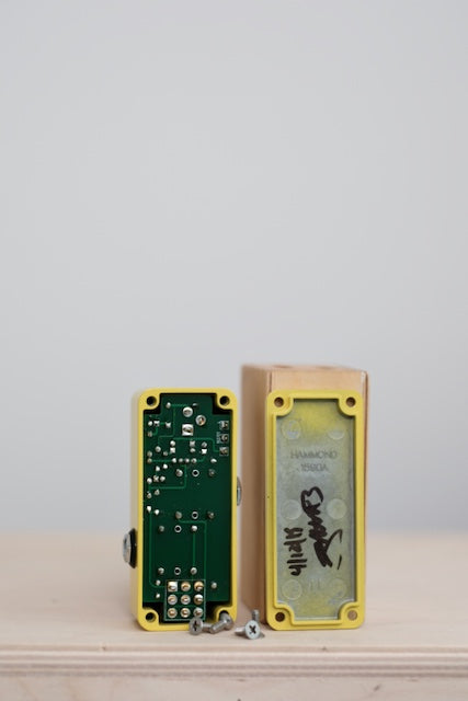 Internally the Golden Fleece is a different type of one knob fuzz. The pedal doesn't rely on a pair of transistors for fuzz instead utilizing a very special silicon and germanium diode pair. Zach has chosen a very special NOS Germanium diode that gives the Golden Fleece it's unique and versatile fuzz voice.