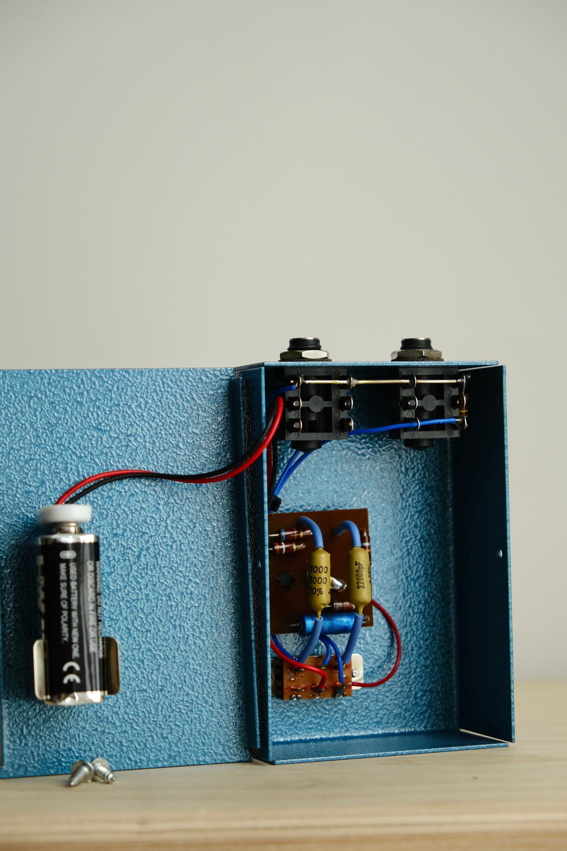 A clone of the Hornby Skewes Treble Booster with original TI 2N4061 loaded circuit on cloned PCB amp-top treble boost in the same vein as the Rangemaster.