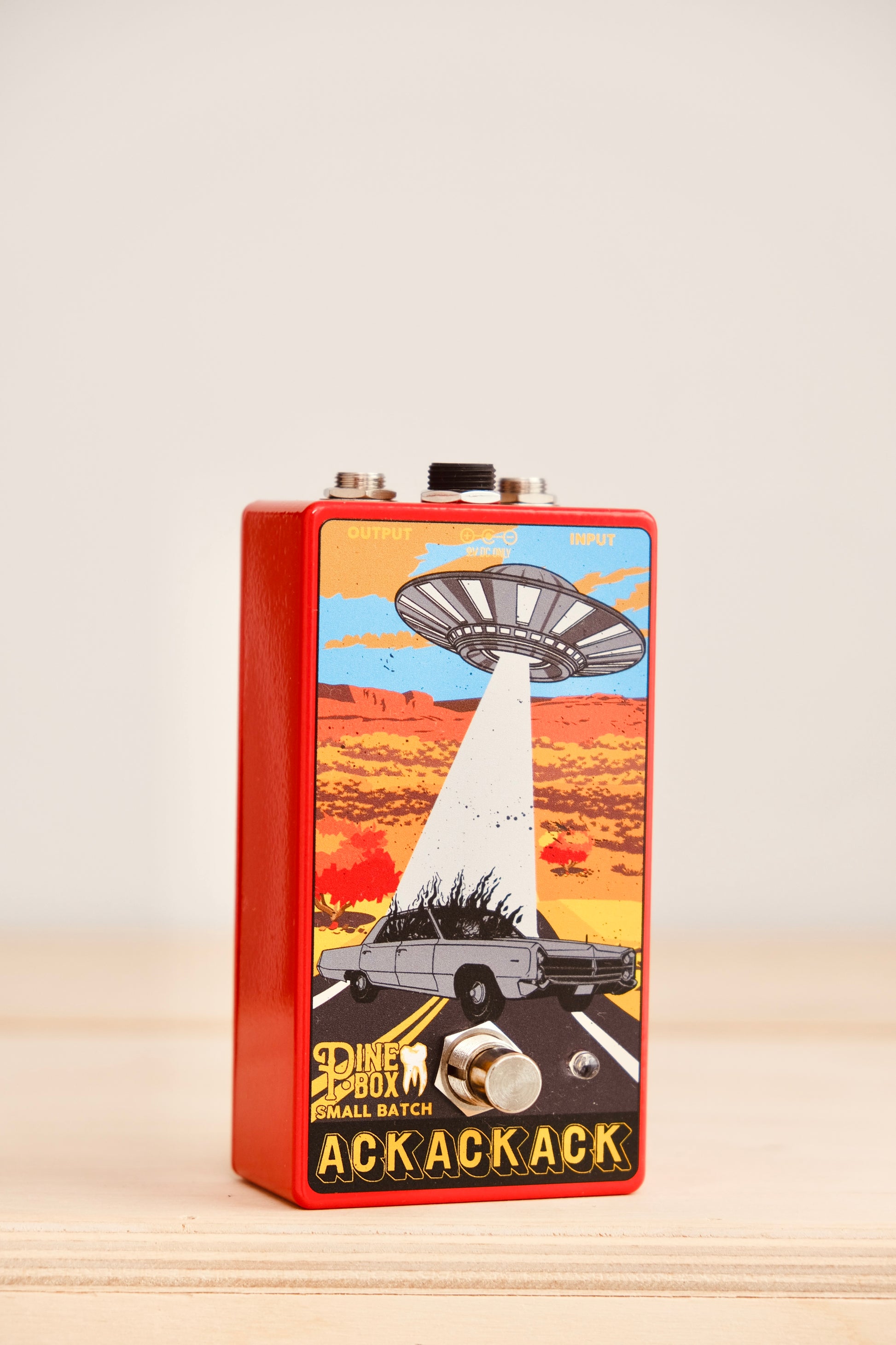 The Ack Ack Ack is a no-knob, speaker blasting fuzz that works well with everything I've thrown at it. Super high gain, an instant classic.