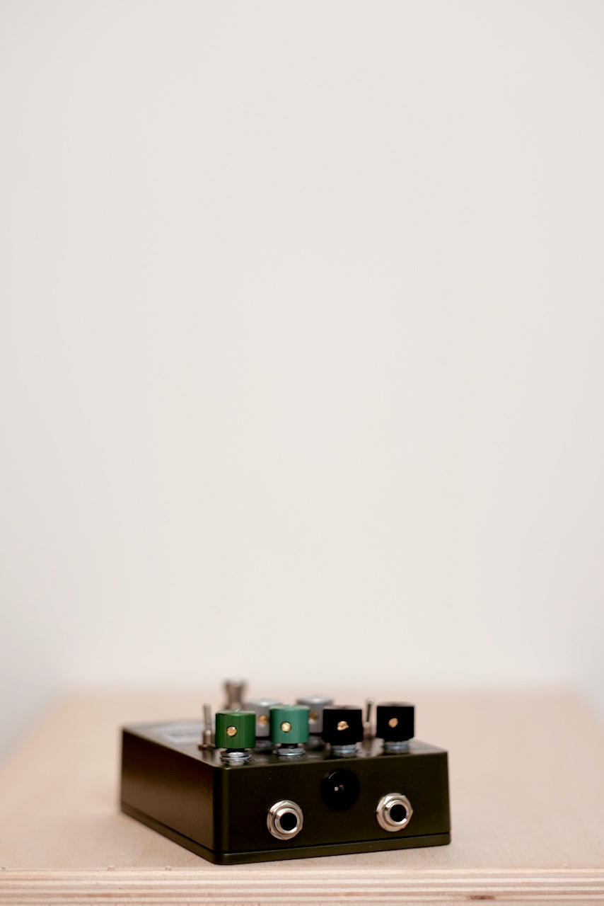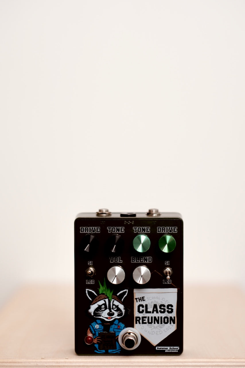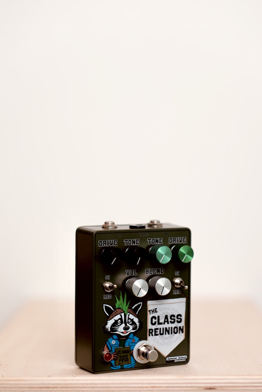 The Class Reunion combines Summer School Electronics’ take on a 90’s Russian Muff with our 2020’s Trash Panda in parallel with a master volume & blend knobs (SILVER). Each side features its own Drive and Tone knobs as well as Diode Selection toggle. (BLACK KNOBS = 90’S MUFF, GREEN KNOBS = TRASH PANDA) By tweaking the parameters, the user can open a world of tones which makes The Class Reunion a versatile drive,as well as a Riff-Writing-Machine. The silicon setting on the muff side (BLACK KNOBS) is a more standard classic muff sound, while the LED setting creates a darker sound with more low end. The LED setting on the Trash Panda side (GREEN KNOBS) is the classic amp-like overdrive from our Trash Panda, while the silicon setting is a lower output, but provides a crispier fizzier drive. By mixing these diode settings with the blend knob, the user can create so many sonic flavors!