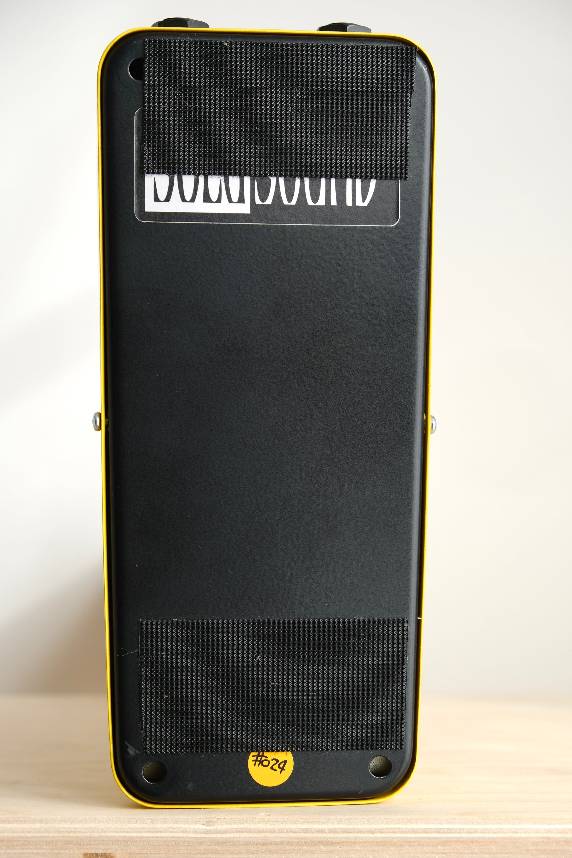 Velcro on the back. Rubber feet missing.